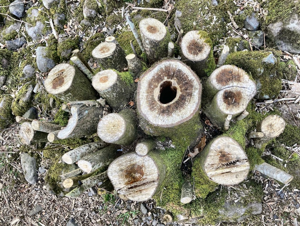 As we got closer to the car, we gathered endless amounts of rubbish on the path, thrown from the nearby road. I scratched my finger on a beer can. A multi stemmed tree had been cut, its trunks now hollow pipes of wood, covered in moss, like a strange puzzle game or sculpture. On a wooden jetty, three ducks waddled, the male preening. We watched him comb his beak through his chest, water drops drying on his feathers, till he lay down on the wood beside his companions and slept.