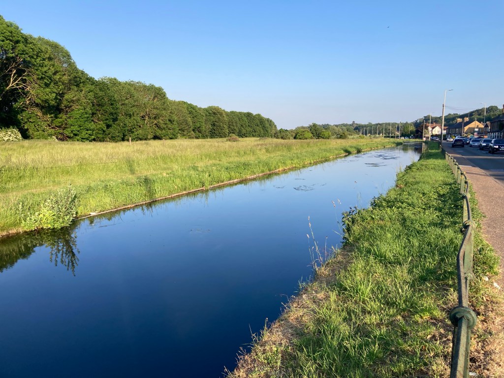 The long grass and wildflowers on the banks had been cut and there were straw like strands on the river’s surface. The water was shallow but dark, treacle brown and rich green. Under the surface, algae and weed streamed in the slow current, rippling like caught up hair, decorating the underwater world with deep green swirls.